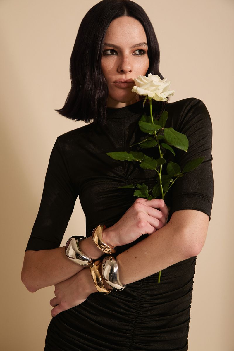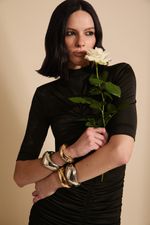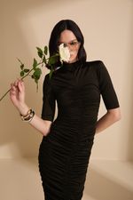 O Vestido Midi Samantha é a definição de elegância moderna. Confeccionado em jersey na cor black, apresenta caimento ajustado que valoriza a silhueta com conforto e sofisticação. O drapeado frontal cria um efeito visual refinado, enquanto a gola alta e as mangas 3/4 trazem equilíbrio e atemporalidade ao design. Ideal para ocasiões especiais ou produções que pedem um visual marcante e elegante.