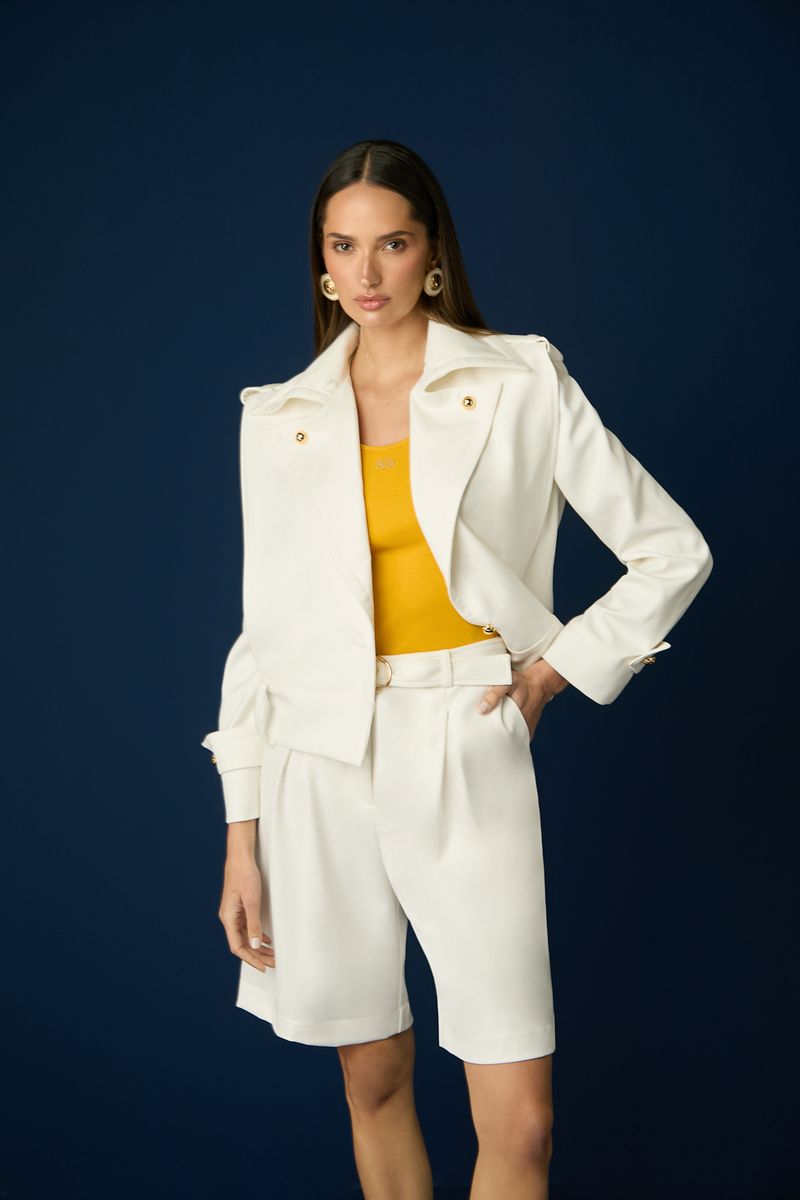 A Bermuda Lila é a aposta certa para um visual elegante e moderno nos dias mais quentes! Com modelagem de alfaiataria e comprimento alongado, ela une conforto e sofisticação na medida certa. A peça conta com pregas frontais que trazem volume sutil e um toque refinado, além de cinto com fivela metálica que valoriza a cintura com estilo. Confeccionada em tecido encorpado na cor Off White, é versátil e perfeita para compor looks casuais chic ou produções mais alinhadas com camisas e blazers. Ideal para quem busca leveza sem abrir mão da elegância!