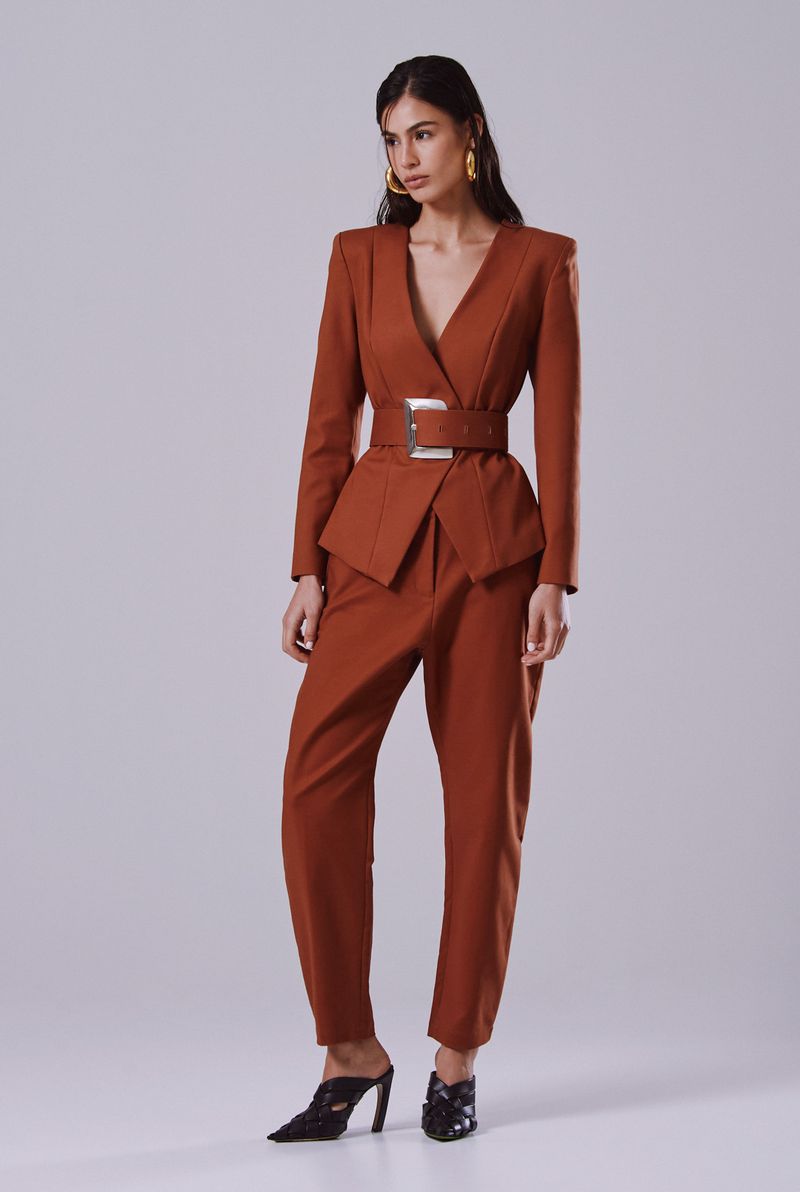 O BLAZER KATE é a peça ideal para quem busca um visual sofisticado e cheio de personalidade! Confeccionado em cotton, esse modelo apresenta uma estrutura impecável que valoriza a silhueta. Seu design moderno traz um decote profundo, mangas longas e um corte assimétrico na barra, criando um efeito ousado e elegante. O cinto com fivela metálica marca a cintura e garante um ajuste perfeito, elevando a sofisticação do look. Na cor Cognac, esse blazer é uma escolha versátil, ideal para combinações formais ou casuais. Combine com calças de alfaiataria para um visual refinado ou aposte em jeans para um toque moderno e fashionista.