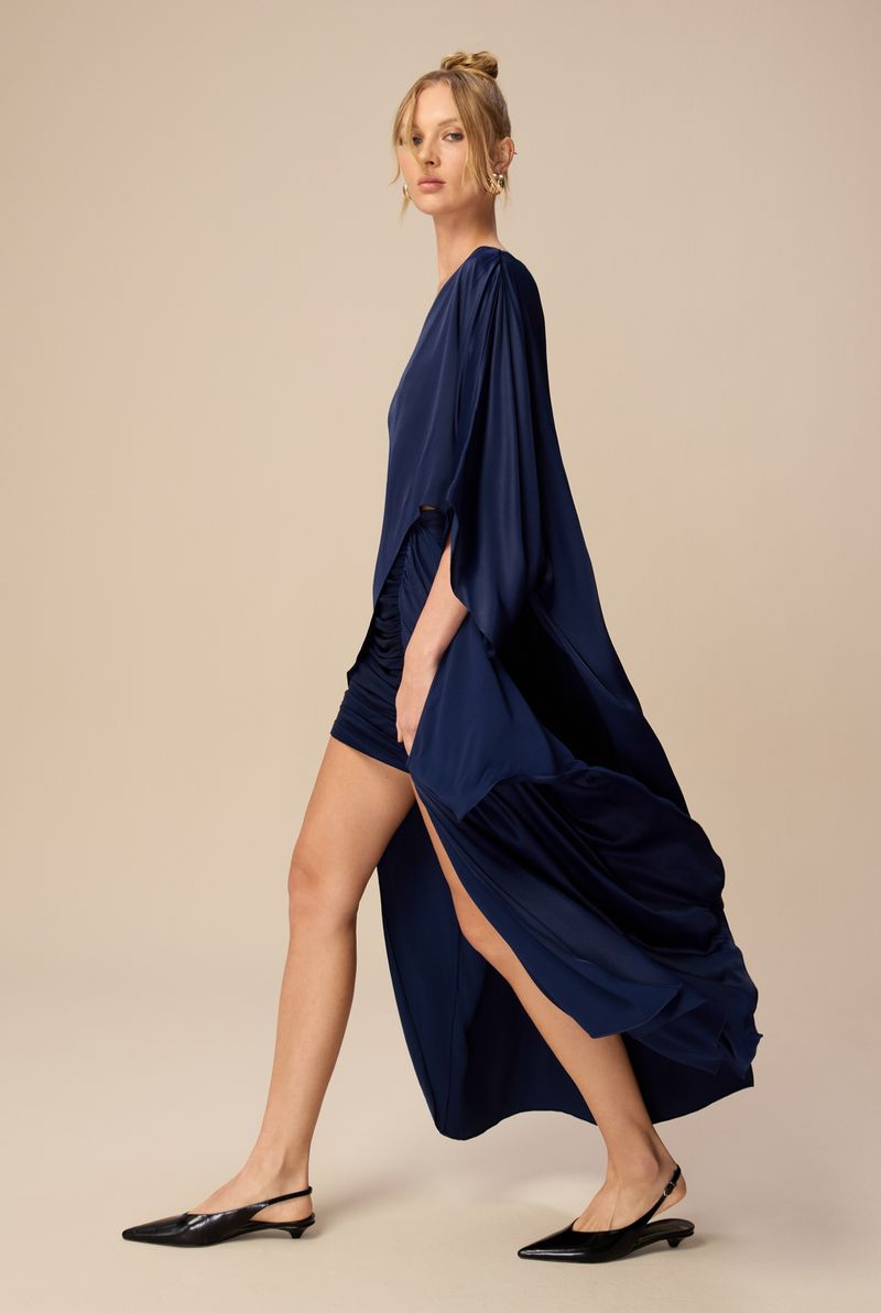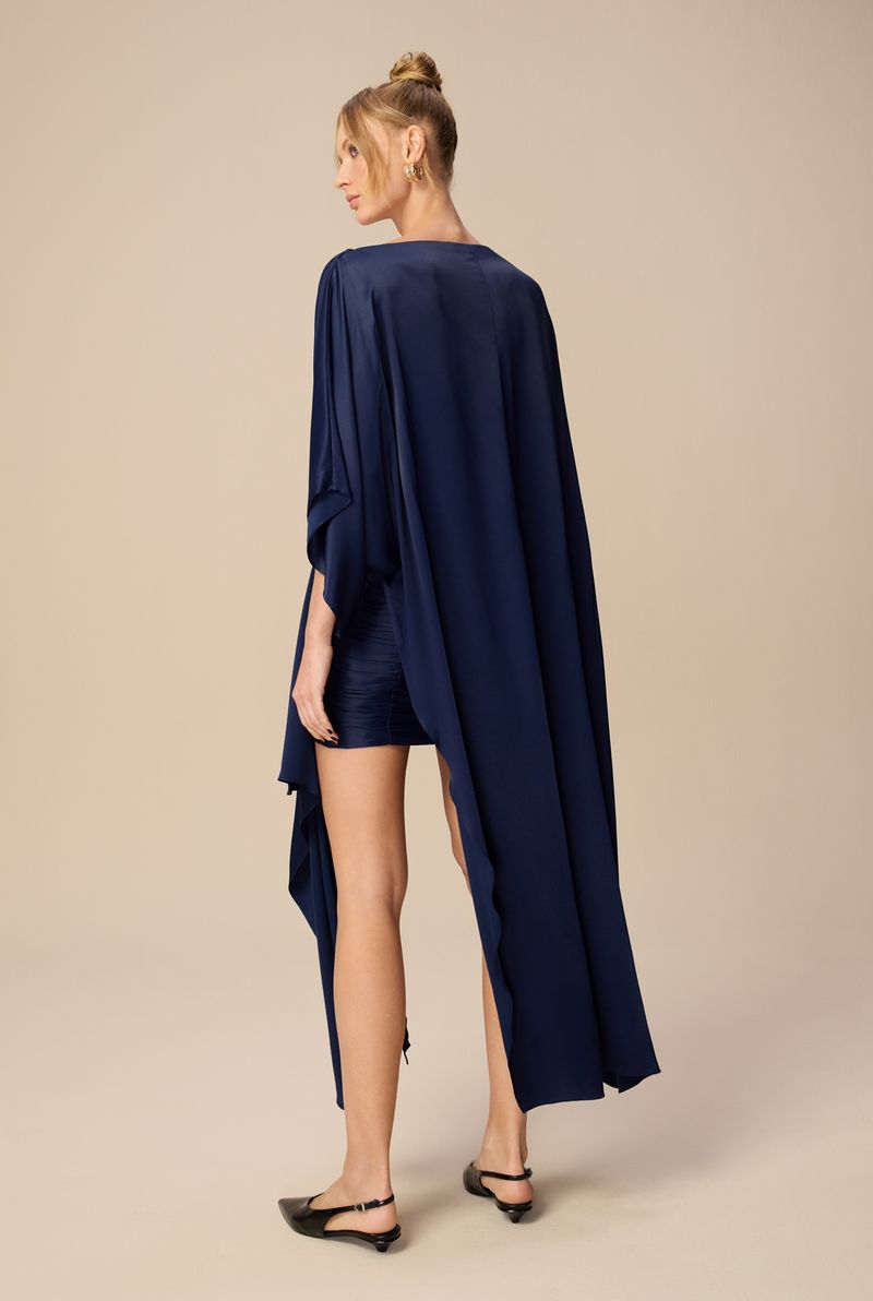 Com mangas amplas e estrutura solta, a blusa proporciona movimento e conforto, sendo ideal para ocasiões especiais ou produções casuais com atitude fashion. Na cor Midnight Blue, é uma peça versátil que traz sofisticação imediata ao visual.