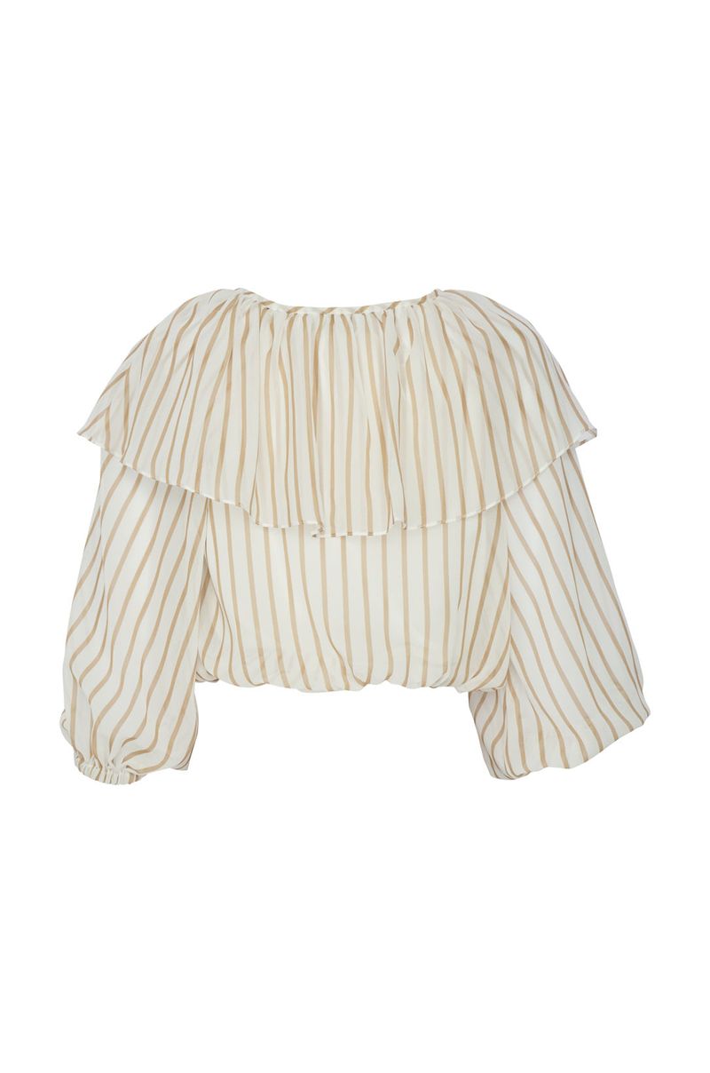 Na cor Sand stripes, a blusa traz um ar clássico e atemporal, perfeita para composições elegantes que transitam do casual chic ao office look com facilidade.