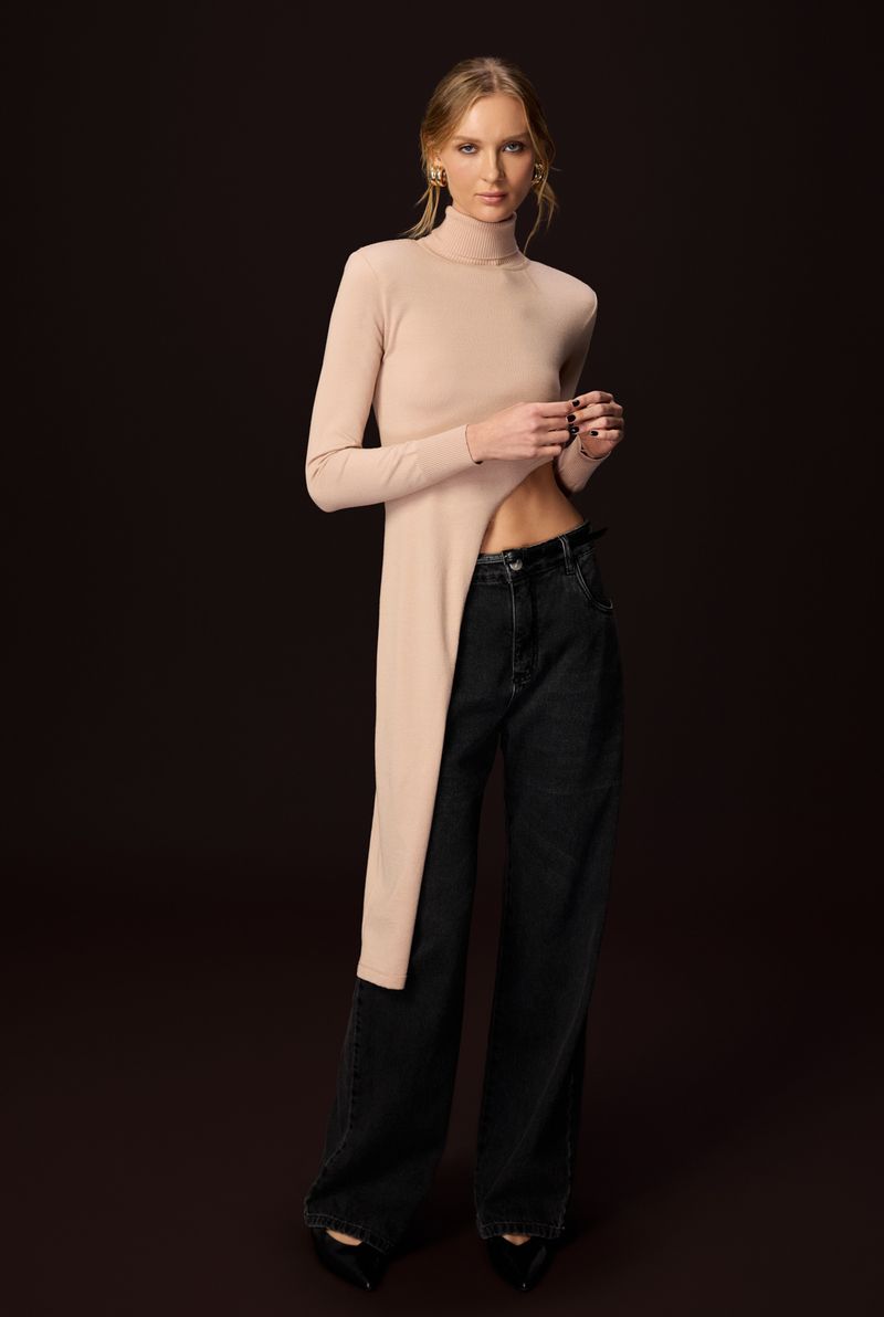 Confeccionada em tricot encorpado, ela combina conforto com um design moderno e ousado. Sua modelagem alongada valoriza a silhueta com sofisticação, enquanto o detalhe assimétrico com botões laterais adiciona um toque fashionista e contemporâneo. A gola alta e as mangas longas reforçam o ar refinado da peça, tornando-a ideal para os dias mais frios. Na cor Nuts, é uma peça versátil e atemporal que transita facilmente entre looks casuais e produções mais elaboradas. Use com calças ajustadas ou saias midi para composições que equilibram elegância e modernidade.