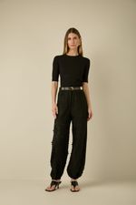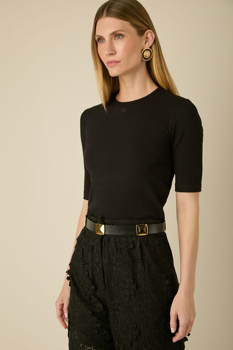 Confeccionada na cor Black, ela possui modelagem ajustada que valoriza a silhueta e garante conforto ao vestir. O decote redondo clássico e as mangas médias trazem um toque moderno, permitindo combinações que vão do casual ao elegante. Seu tecido com leve textura agrega sofisticação e praticidade, tornando-a ideal para compor desde looks para o dia a dia até produções mais refinadas. Uma escolha curinga para o guarda-roupa feminino!