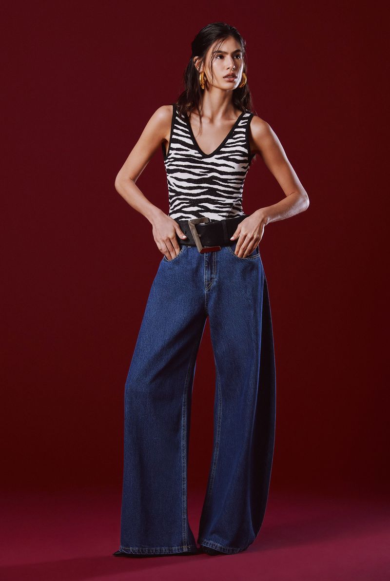 Feito em tricot, ele possui uma modelagem ajustada que valoriza a silhueta com muito conforto e estilo. A estampa Zebra Print traz um toque moderno e autêntico, transformando a peça em um destaque do visual. O decote arredondado e as alças largas garantem um caimento impecável e sofisticado. Versátil e estiloso, esse body pode ser combinado com jeans, saias ou alfaiataria para criar produções marcantes e cheias de personalidade!
