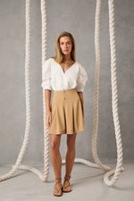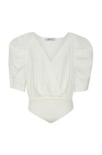 Confeccionado em cotton, oferece conforto e um toque macio à pele, enquanto sua modelagem transpassada valoriza o colo e traz feminilidade ao visual. As mangas bufantes 3/4 adicionam um ar romântico e moderno, equilibrando volume e elegância na medida certa. Na cor off white, o body se torna um item versátil, ideal para composições que vão do dia à noite. Combine com calças de alfaiataria ou saias fluídas para um visual elegante e contemporâneo.