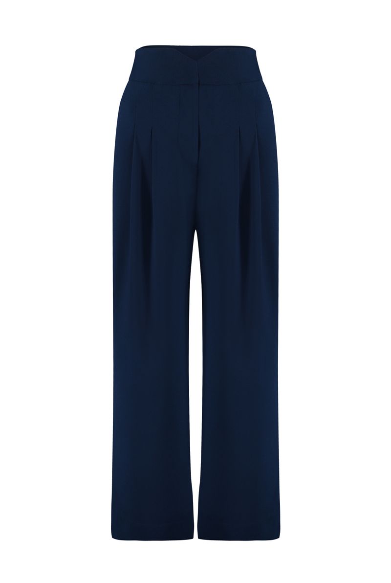Confeccionada na sofisticada cor Navy Blue, essa peça se destaca pela modelagem wide leg com cintura alta, que alonga a silhueta e proporciona um caimento fluido e imponente. O diferencial fica por conta do recorte em “V” no cós, que valoriza a cintura de forma única e fashionista. Com passantes amplos e acabamento impecável, é perfeita para compor desde produções casuais chiques até looks mais formais com blazers ou camisas estruturadas.