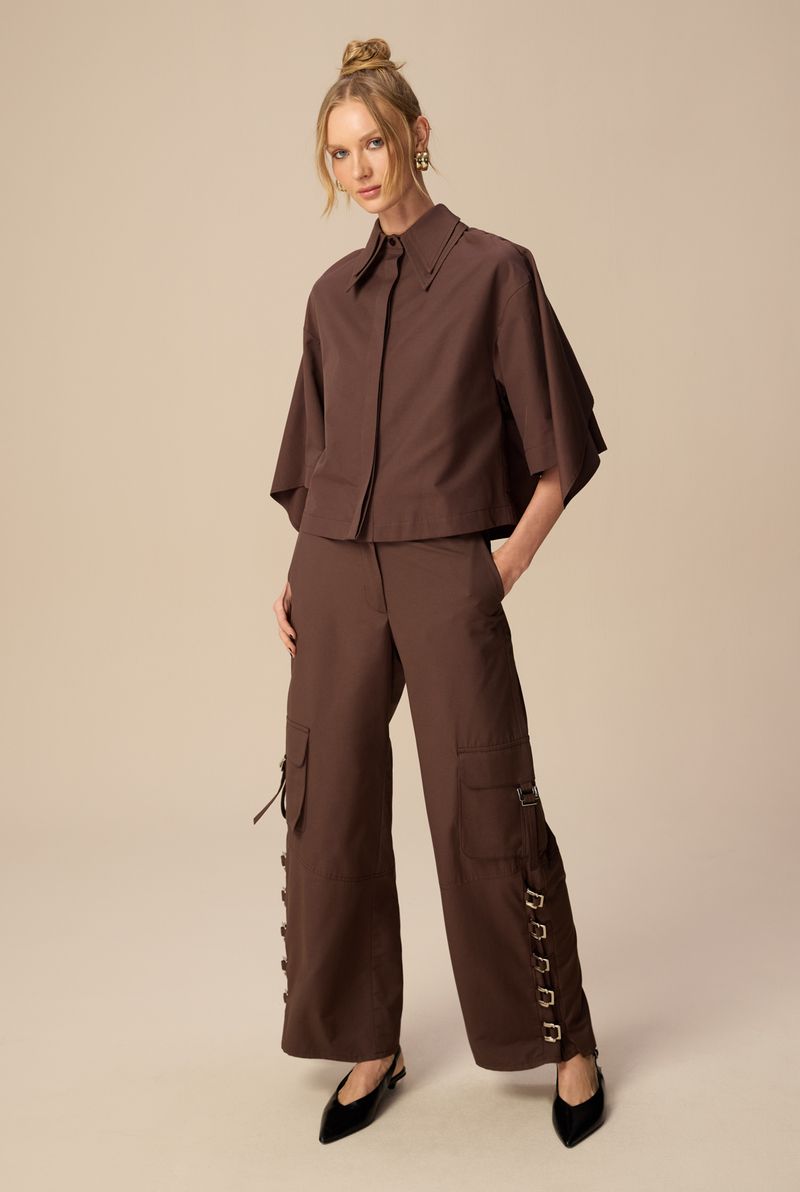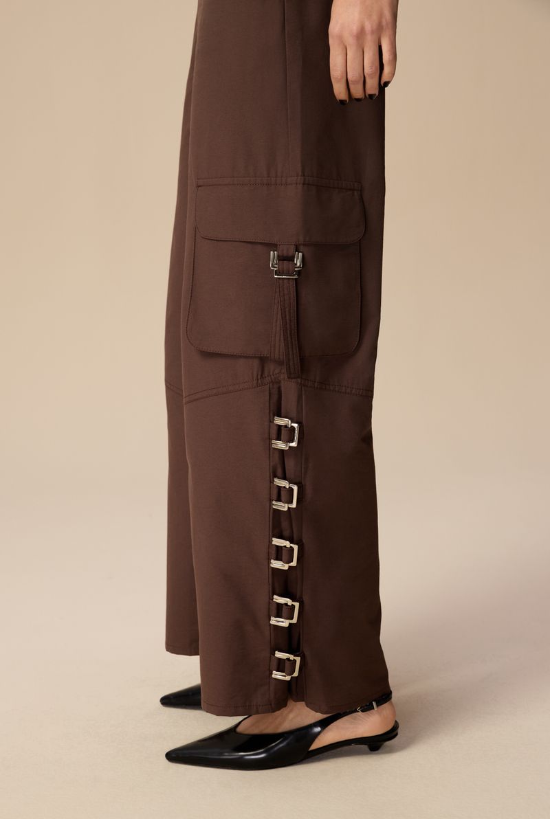 A Calça Audrey é a escolha ideal para um visual urbano com atitude! Confeccionada em cotton e com acabamento impecável, ela traz uma modelagem reta com caimento estruturado e bolsos utilitários que adicionam funcionalidade ao estilo. Na cor brown, um tom marrom sofisticado e versátil, a peça se destaca pelos detalhes laterais com tiras e fivelas, que criam um visual moderno e cheio de personalidade. Os bolsos cargo com ajuste e amarração reforçam a proposta utilitária com um toque contemporâneo. Ideal para compor produções ousadas e autênticas — combine com croppeds ou jaquetas oversized para um look fashion-forward!