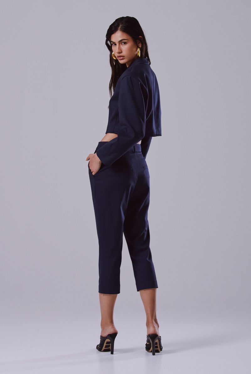 Confeccionada em Apen 2, ela oferece um caimento impecável e conforto ao longo do dia. Sua modelagem capri realça a silhueta, proporcionando um toque refinado ao visual. Com cintura alta, fechamento por zíper e botão, além de bolsos laterais funcionais, a peça une praticidade e sofisticação. O tom Blue adiciona um ar clássico e versátil, ideal para combinar com blusas de alfaiataria ou até um blazer estruturado para um look chic.