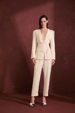 A Calça na cor Vanilla é confeccionada em tecido Crepe com estrutura de alfaiataria, proporcionando um caimento elegante e sofisticado. A peça apresenta modelagem cenoura com cintura média, valorizando a silhueta com conforto. Possui bolsos faca, fechamento por zíper de nylon, botão interno e colchete de metal, além de barra italiana que complementa o visual moderno. O comprimento cropped social traz um toque contemporâneo à peça, ideal para composições refinadas.