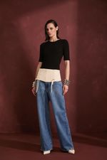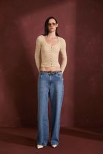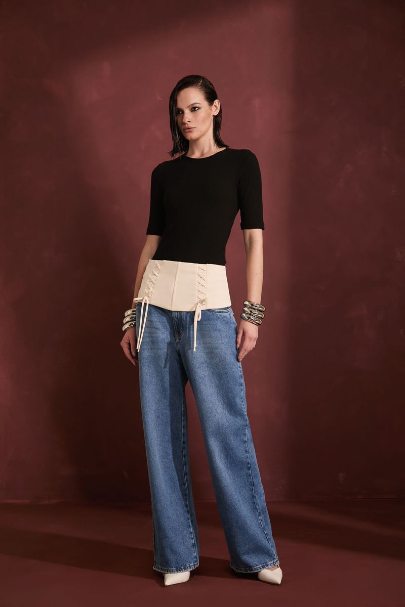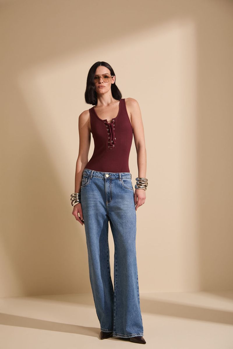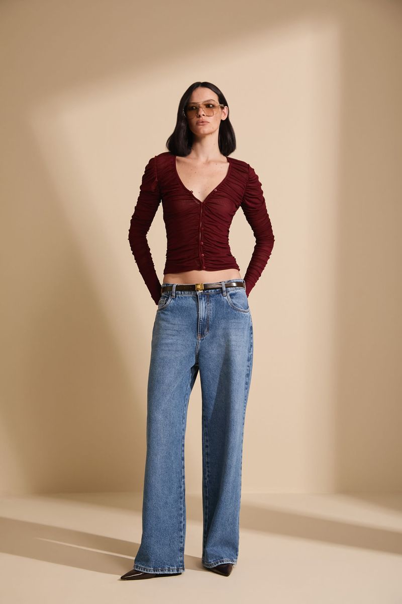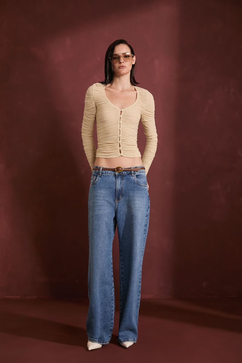 A Calça Jeans Dua na cor Medium Denim é confeccionada em tecido jeans com leve elasticidade, proporcionando conforto e liberdade de movimento. A peça apresenta modelagem reta com cintura média, valorizando a silhueta com caimento equilibrado. Possui cós com passantes para cinto, bolsos frontais e posteriores e fechamento por zíper e botão. O comprimento longo completa o design clássico da peça, tornando-a versátil para diferentes composições.