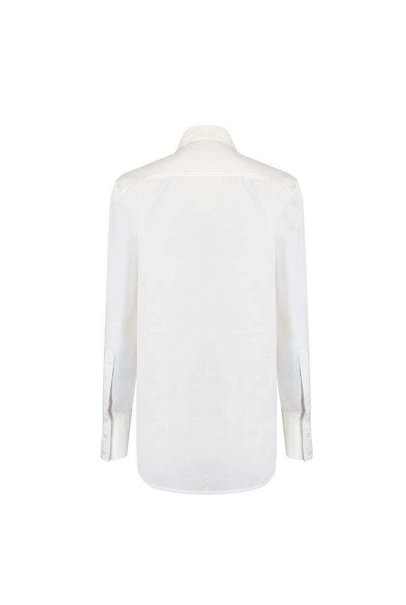 A Camisa Mandy é confeccionada em cotton. A peça apresenta modelagem reta, proporcionando um caimento elegante e sofisticado. Possui mangas longas, gola tradicional e fechamento frontal por botões, garantindo versatilidade e conforto. Sua cor Off White adiciona um toque clássico, perfeito para composições atemporais.