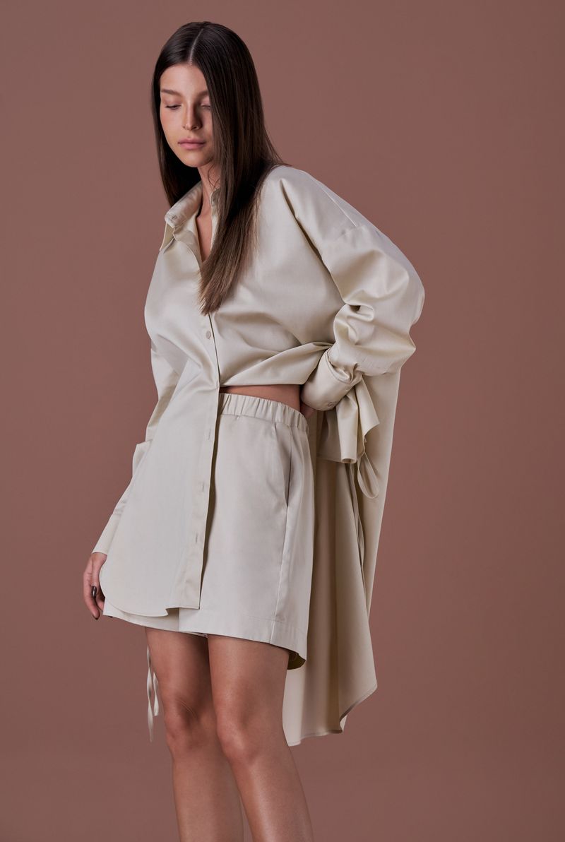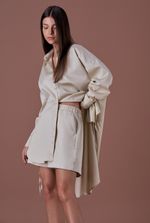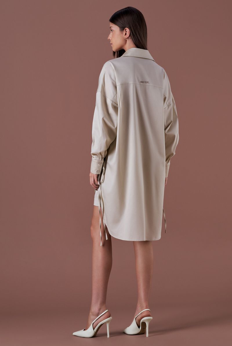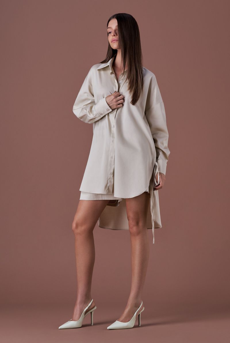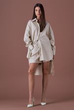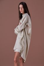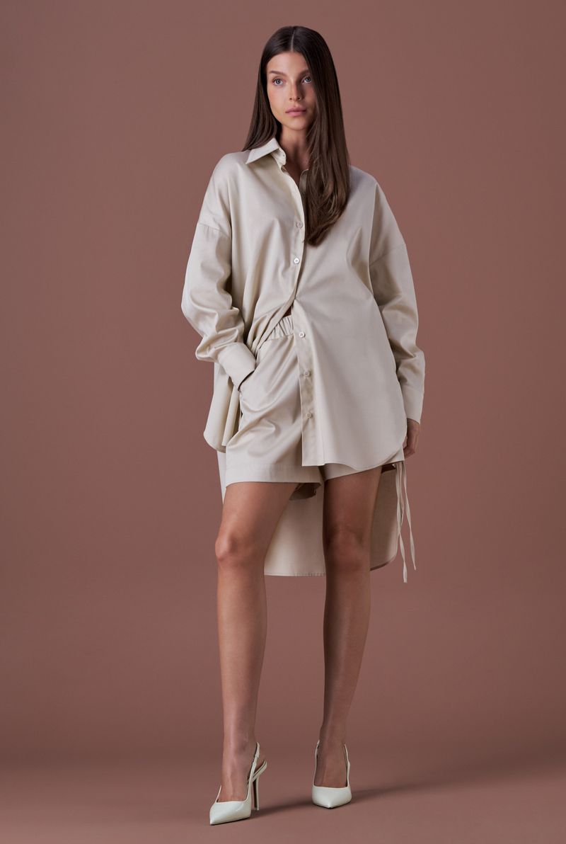 A peça apresenta modelagem oversized, proporcionando um caimento fluido e sofisticado.