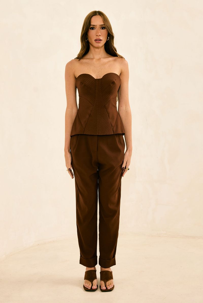 O Corset Cleo é a peça-chave para um look poderoso e sofisticado! Confeccionado em Crepe de alfaiataria, ele traz modelagem estruturada que valoriza a silhueta e destaca a cintura com muito estilo. Seu design sem alças com decote coração garante um visual elegante e feminino, enquanto as costuras estratégicas adicionam modernidade e um toque fashionista. O tom Brown reforça a sofisticação e versatilidade, tornando o corset ideal para compor produções que vão do casual chic às ocasiões especiais.
