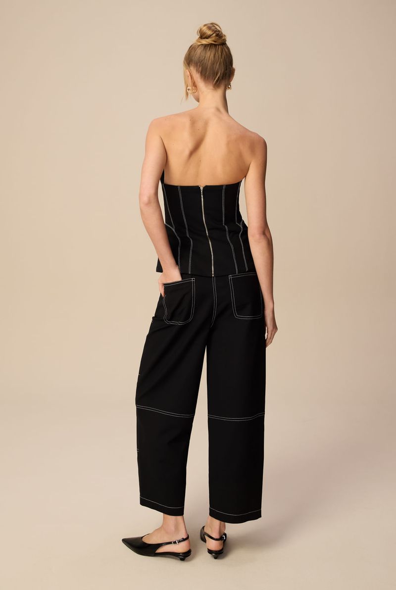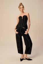 Feito em Cotton encorpado, na cor Black, o corset traz uma modelagem estruturada com decote profundo em "V" que valoriza o colo com ousadia e elegância. Seu design ajustado ao corpo garante um caimento impecável, destacando a silhueta de forma refinada e impactante. Com acabamentos impecáveis e sem alças, é perfeito para composições noturnas ou para elevar o visual em produções fashionistas com calças de alfaiataria ou saias de cintura alta.
