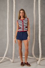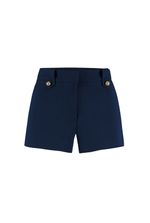 Com uma modelagem ultracurta e cintura alta, ele valoriza as pernas e cria uma silhueta alongada. Confeccionado na cor elegante Navy Blue, traz um toque refinado ao visual, mesmo em propostas casuais. Os passantes largos com botões dourados adicionam charme e sofisticação à peça, que se destaca pela estrutura minimalista e ao mesmo tempo marcante. Perfeito para dias quentes, o MICRO SHORT combina com camisas oversized, croppeds ou blazers, compondo produções que vão do dia à noite com muita atitude.