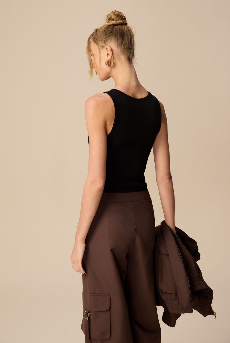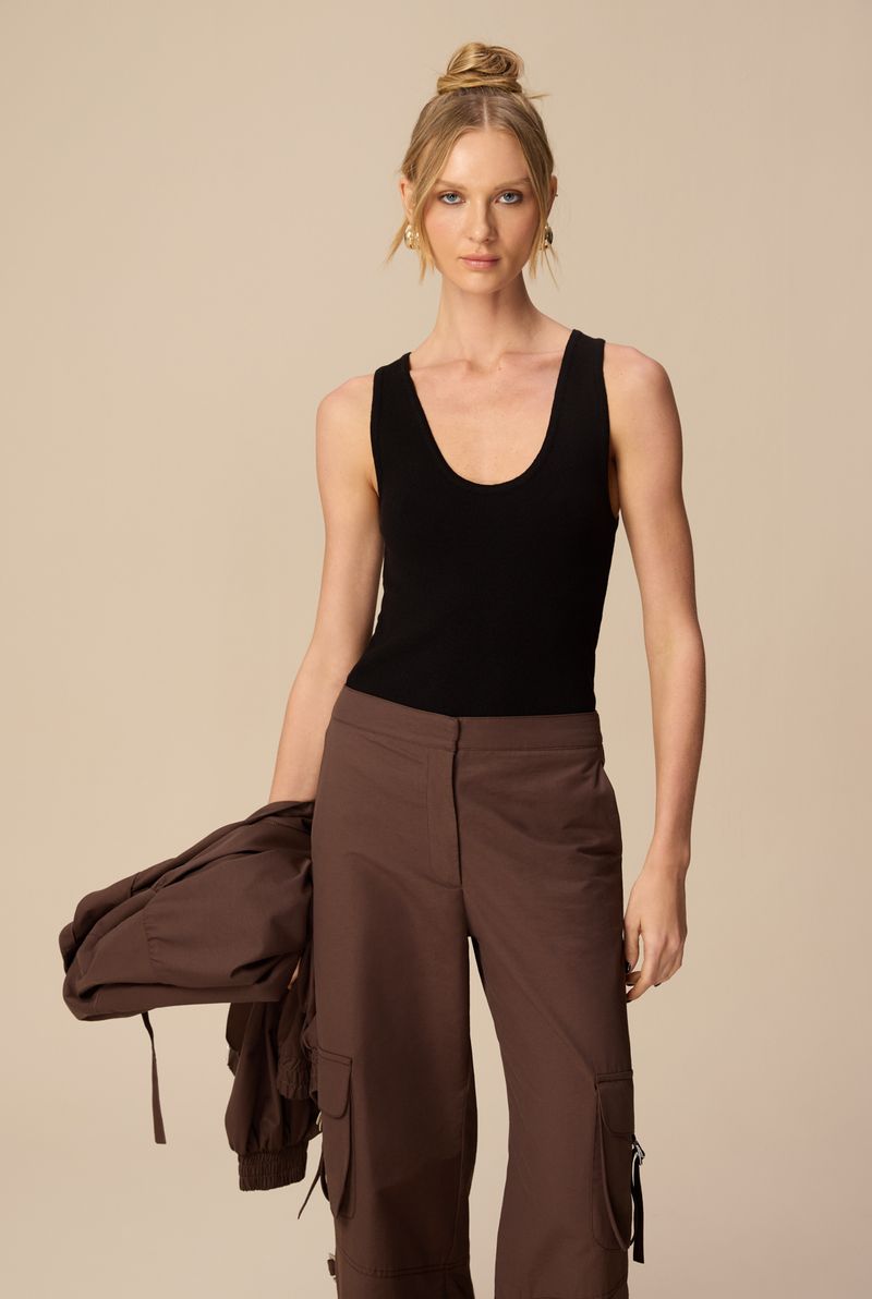 Feita em tricot, essa peça ajustada ao corpo valoriza a silhueta com sofisticação e conforto. Sua modelagem clássica com decote arredondado profundo traz um toque moderno e feminino, ideal para produções casuais ou elegantes. A ausência de mangas garante leveza, sendo perfeita para dias mais quentes ou para compor sobreposições estilosas nas meias-estações. Na cor black, é uma peça-chave no guarda-roupa por sua versatilidade e atemporalidade. Combine com calças de alfaiataria, jeans ou saias para um visual equilibrado e cheio de personalidade!