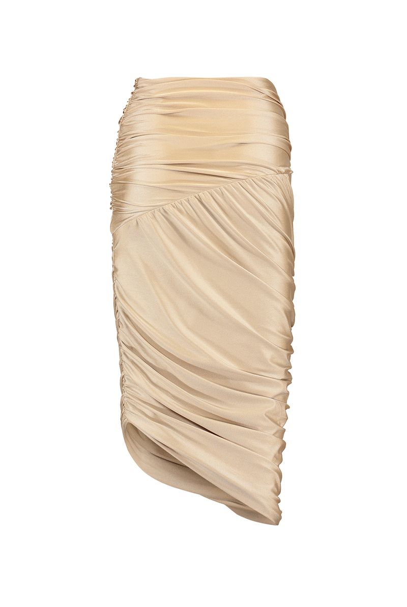Confeccionada em Malha Shine, ela apresenta modelagem midi com drapeados marcantes que valorizam a silhueta e criam um efeito elegante e feminino. O caimento fluido aliado ao design ajustado garante movimento e estilo, tornando a peça ideal para composições que vão do casual chic a produções sofisticadas.