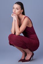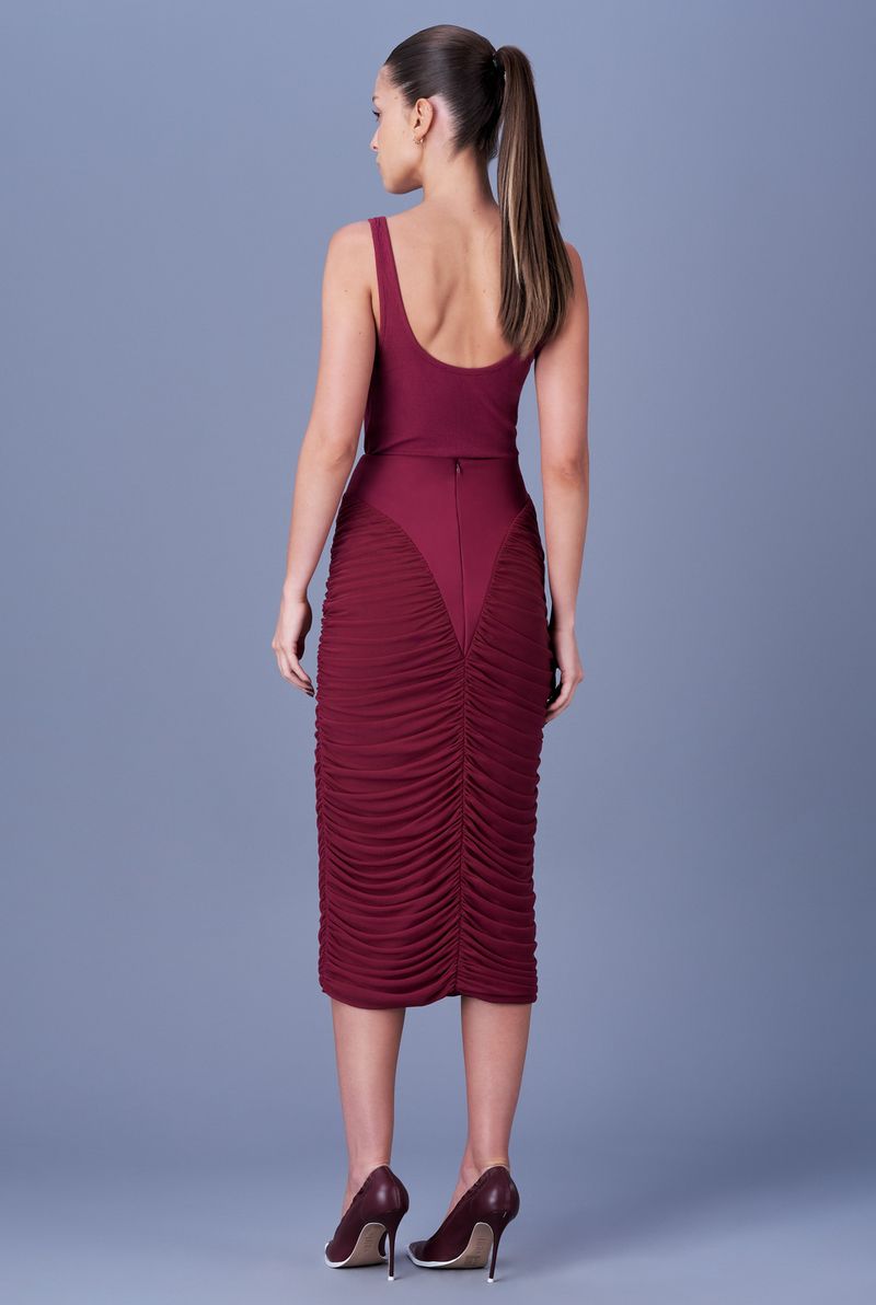 Na cor Cereja, a saia se torna um clássico atemporal, perfeita para composições sofisticadas ou looks ousados. Combine com a Capa Kim para um visual poderoso, ou opte por um body estruturado para um estilo sofisticado e moderno.