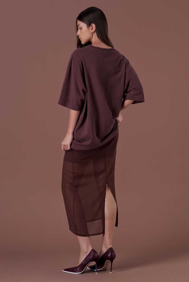 A Saia Midi Patrice é confeccionada em Silky, um tecido leve e fluído que proporciona um caimento sofisticado.
