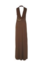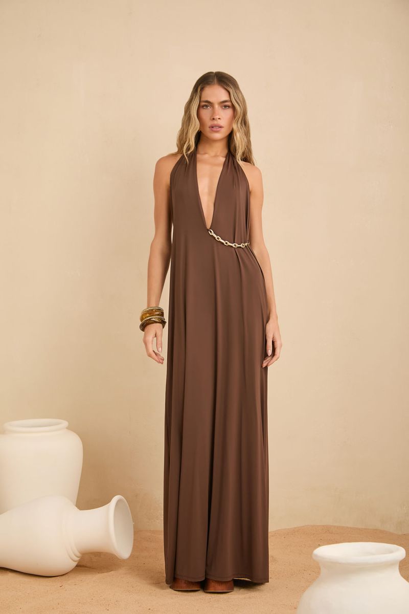 Na cor Brown, o vestido ganha ainda mais presença e sofisticação, trazendo profundidade e modernidade ao look, perfeito para eventos especiais, produções noturnas e ocasiões que pedem elegância com personalidade.
