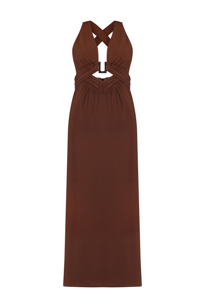 O Vestido Lori é a escolha perfeita para um look sofisticado e cheio de presença! Confeccionado em Crepe de alfaiataria, ele traz caimento fluido e elegante, ideal para valorizar a silhueta com leveza. Sua modelagem longa destaca o busto com decote profundo e detalhe em argola central, que adiciona um toque fashionista ao visual. O tom Brown traz modernidade e versatilidade, perfeito para composições que vão de eventos especiais a produções noturnas cheias de estilo. Um vestido impactante para quem busca unir sofisticação e contemporaneidade!